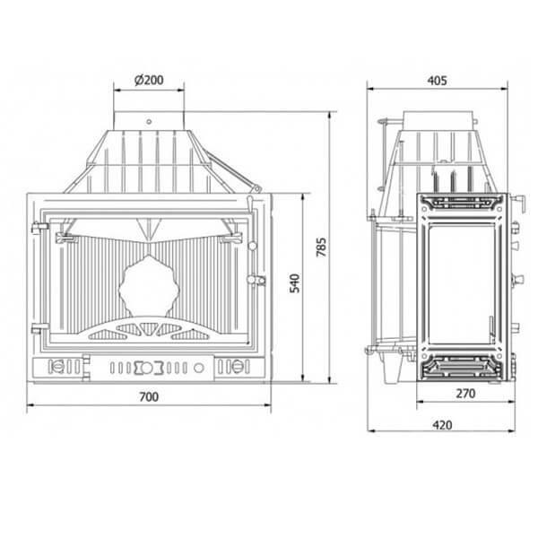 Еще одной отличительной особенностью каминных топок Kawmet является наличие встроенной шиберной заслонки с блокиратором дверцы.
