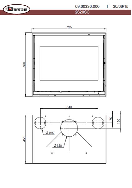 Инструкции, чертежи, документы - Каминная топка Dovre 2620SC/B