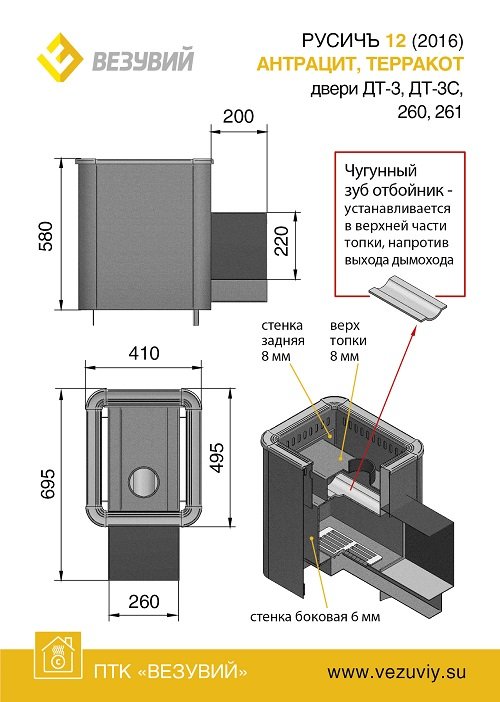 Банная печь Везувий Русичъ Антрацит 12 (ДТ-3С) 2022 Уцененный