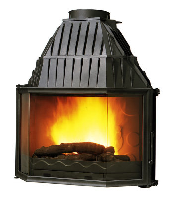 2. Высокая. Возвышается над топочной камерой. Верхняя часть имеет плоскую форму. Среди каминных топок это фирма Супра с моделями «Астра», «Альтима».