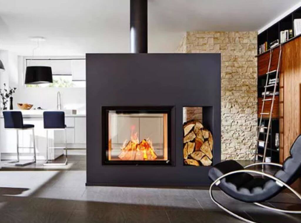 Уникальный обзор и эффект пламени создают оригинальные панорамные-сквозные камины от компании Бруннер.