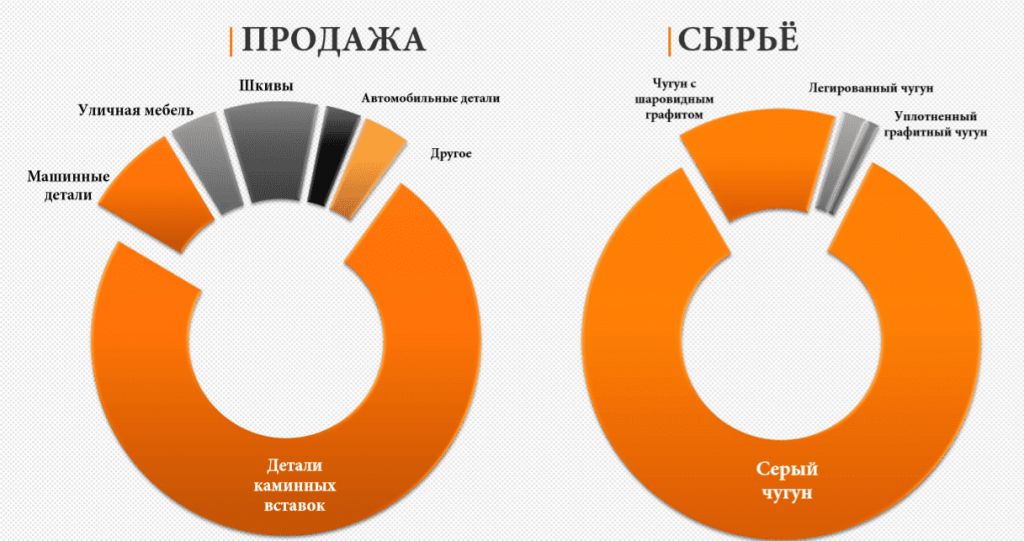 - Внедрение технологии для производства каминных вставок с высокой производительностью. Для их изготовления использовался серый чугун с вермикулярным графитом.