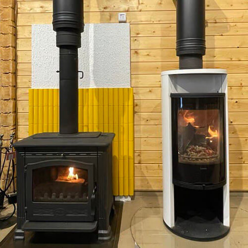 В магазине на Новой Риге было жарко. Мы устроили сравнение двух каминов. Стальной Contura 610G Style против чугунной Plamen Tena. Сталь против чугуна. Кто быстрее нагревается после растопки и насколько? А кто дольше держит тепло, и опять же – насколько? Получилась настоящая огненная битва.