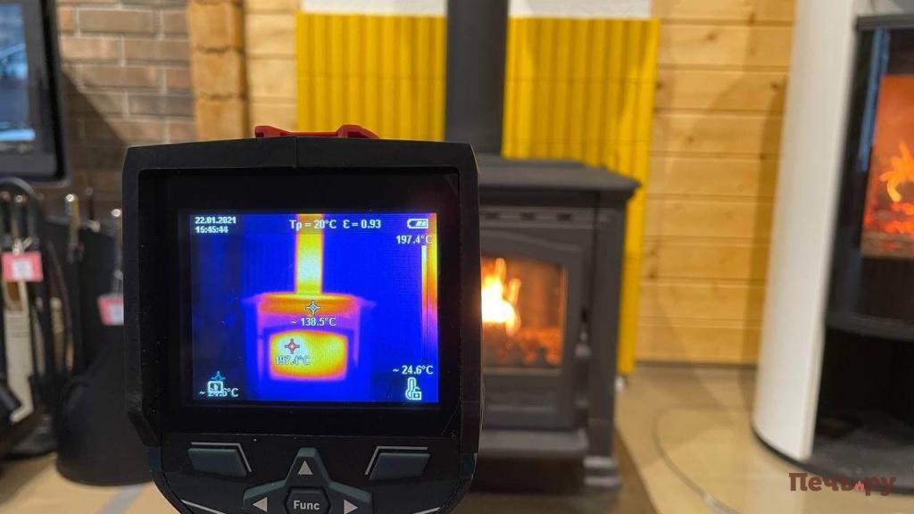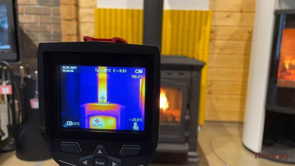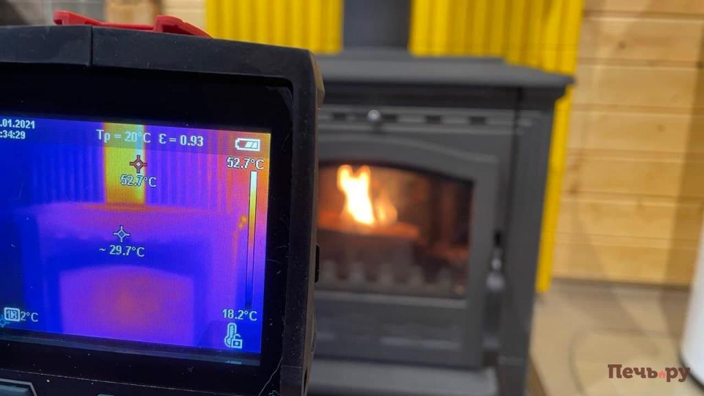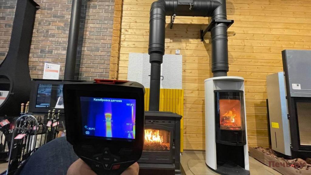 Растопили обе печи-камина одновременно. Степень нагрева замеряли пирометром.